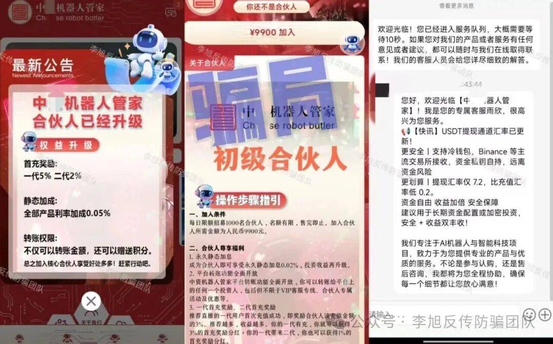 冒用正规500强企业为项目“镀金”,推出多款AI机器人虚假投资理财项目。投资入金依赖USDT完成,资金不受法律保护,去向不明。
