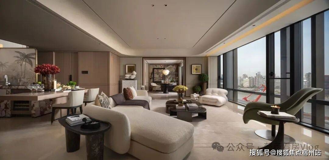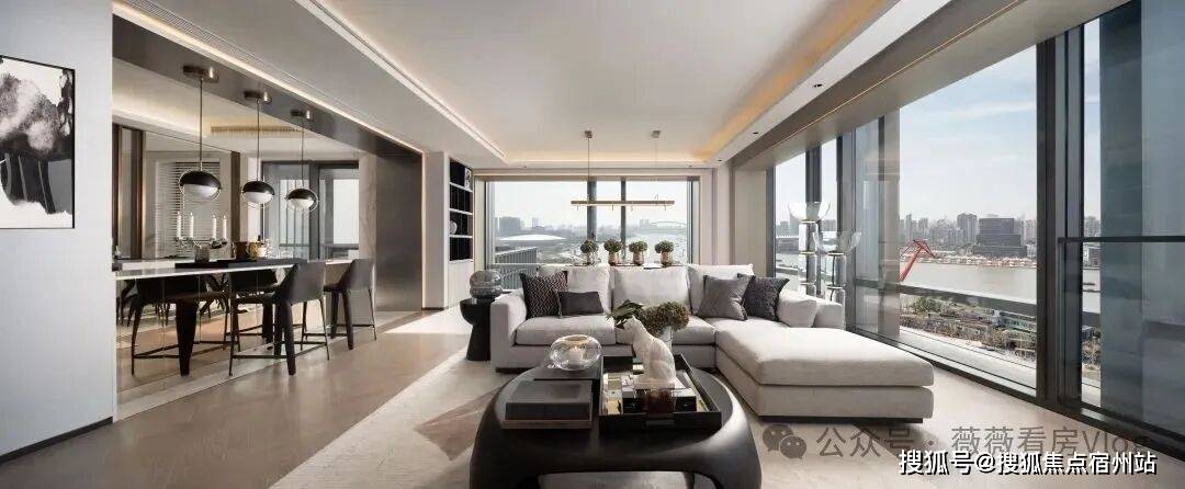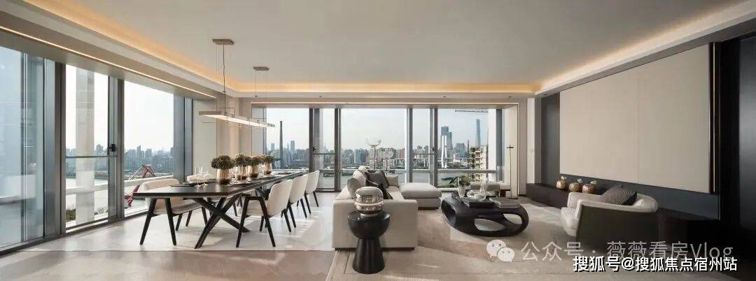 ·建面约240㎡边套,采用L型转角落地窗,打造了270°环幕瞰江视野,无论身处客厅、餐厅,都能以不同角度眺望黄浦江的波光粼粼