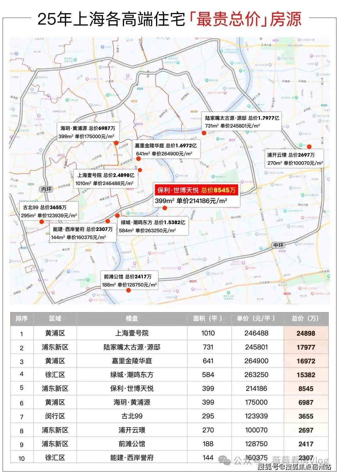 前面讲了2025年上海高端项目的最贵单价TOP10,接下来我们继续来看最贵总价TOP10: