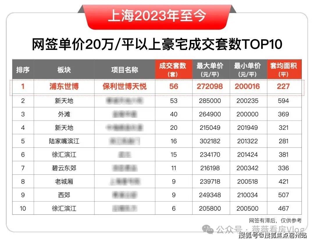 再将时间轴往前移,从2023年至今上海豪宅单价超20万/m²的成交量排行中,保利世博天悦甚至力压新天地、外滩、陆家嘴、苏河湾、徐汇滨江等一众热门板块新盘,问鼎上海豪宅之巅!