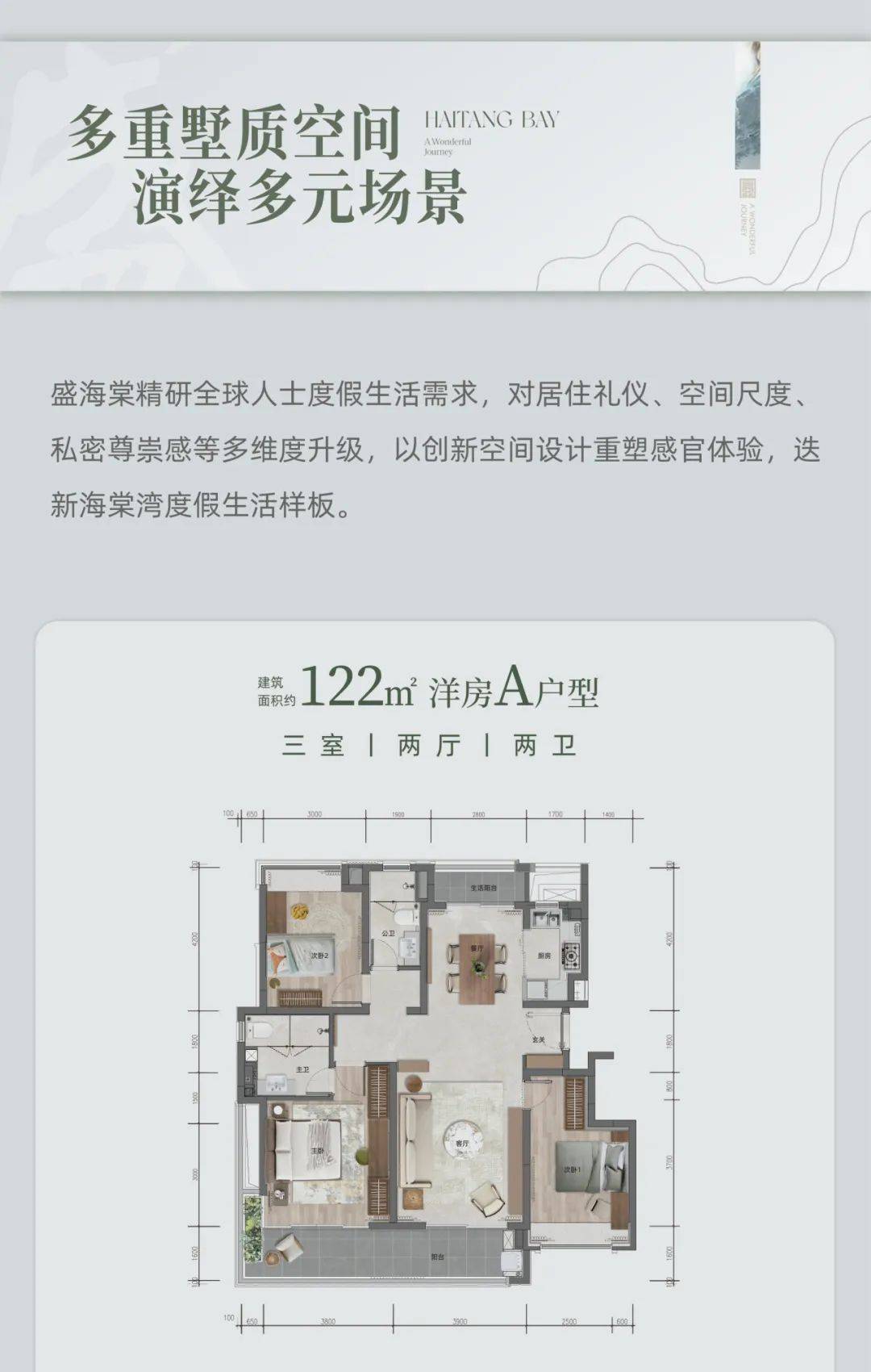 现在热售的户型有建筑面积约 152 - 160㎡的温泉叠墅,还有约 105 - 122㎡的瞰景洋房。物业是大名鼎鼎的绿城物业,住在这里,服务品质稳稳在线。项目地址就在中国・海南・海棠湾 ,这地段,简直绝了!