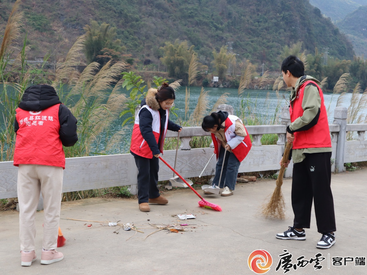六纳村志愿者们来到红水河畔开展“保护母亲河 争当‘河小青’”环保志愿服务活动,倡导移风易俗。