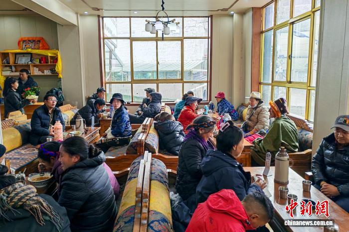 1月2日,市墨竹工卡县德仲温泉附近的茶馆里人声鼎沸。中新社记者 江飞波 摄