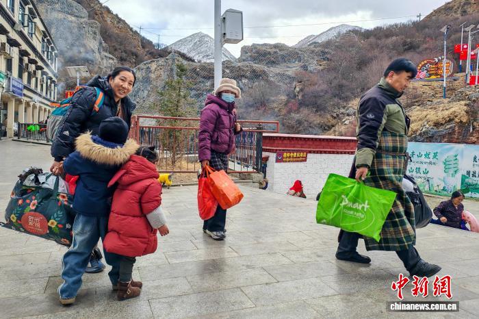 1月2日傍晚,陆续有民众提着大包小包到达市墨竹工卡县德仲温泉,准备在此享受冬日的温泉时光。中新社记者 江飞波 摄