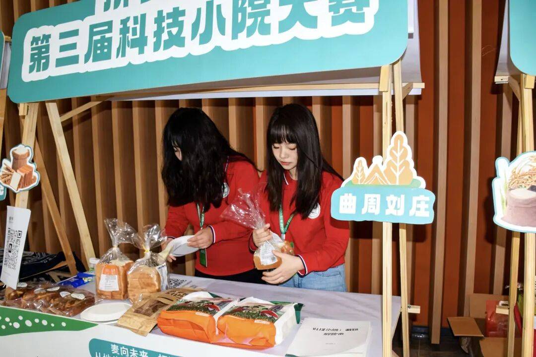▲大赛现场的展示环节,刘庄科技小院带来了自制面粉和面包。新京报记者 胡倩 摄