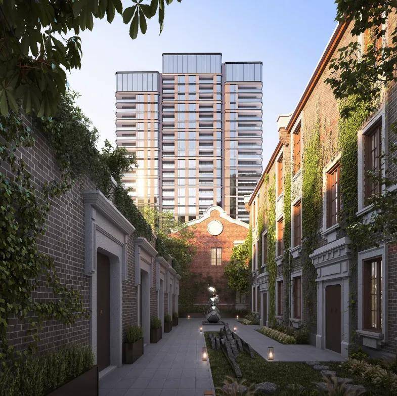 整体规划一横两纵三大轴线, 串联高层住区、文化保护别墅区、新海派风貌别墅区,通过不同设计语言形成“新旧交融”的空间节奏——高层区以现代简约线条演绎都市格调,别墅区则复刻历史肌理并注入现代美学。