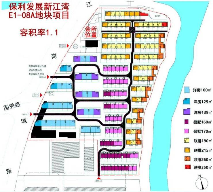 1、东侧沿河第一线排布面积最大的合院与叠墅产品,最好的资源给到总价最高的户型。