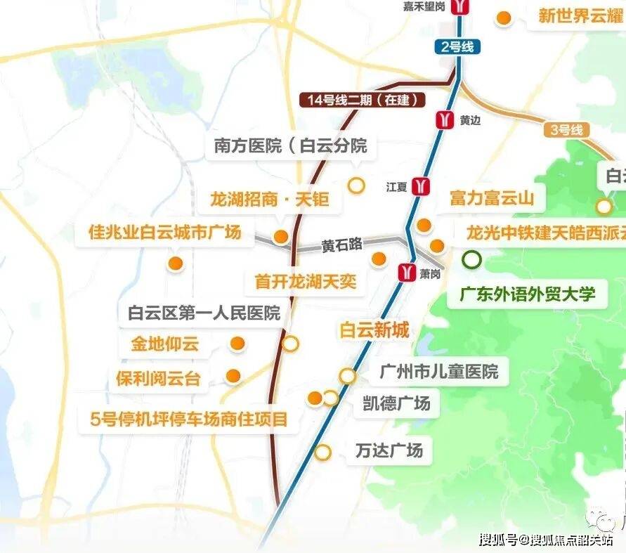 交通方面,项目周边有地铁2号线的江夏站与萧岗站,还有多条公交线路,出行便利。双地铁上盖(江夏站、萧岗站),地铁2号线号线二期环绕,构成了立体的交通网络。项目东邻白云大道,西邻广云路,北连黄石北路、华南快速,可以快速接驳机场高速,南接黄石东路、内环路、广园路。这样的路网结构,使得从项目出发,可以快速到达越秀老城区、珠江新城,甚至直达白云国际机场。对于经常需要商务出行的精英阶层来说,这种“半小时生活圈”的便捷性,是无可替代的竞争优势。