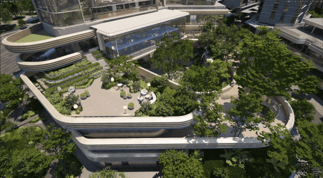 而抬高的空间更没浪费,这里将打造一个船舷花园,林泉、瀑布、溪流、花木等穿插其中,造型别致,相当于一座立体都市秘境。