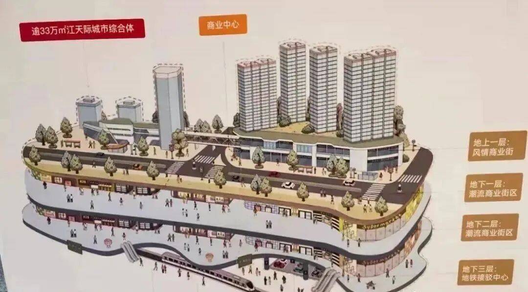 超2万m²超大商圈,地面规划2-3层的临江商业街,地下3层地下商场与地铁站连通,业态丰富。5公里范围内有人气旺盛的万达广场和5号停机坪购物广场大体量顶级商服配套。