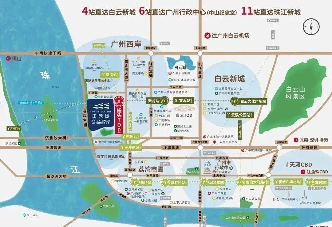 江天际是位于白云区广海路的白云槎头站上盖TOD项目。它东侧紧邻珠江西航道,对面则是佛山南海。拥有独特的一线江景。
