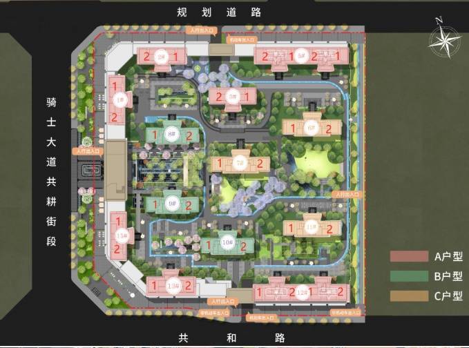 6、 总栋数:13栋 7、总户数:451户 8、车位:576个 9、 层高:13号楼是13+1层外,其他楼栋都是16+1层(2T2H,独立入户光厅)